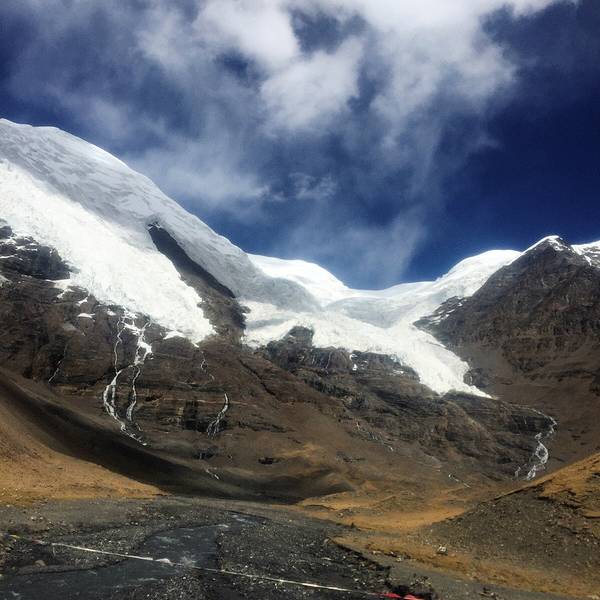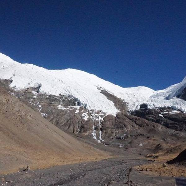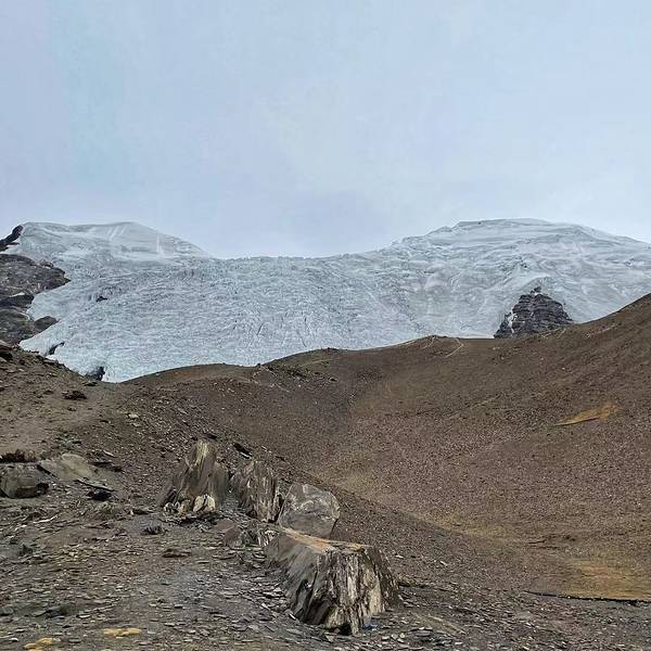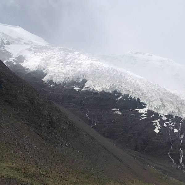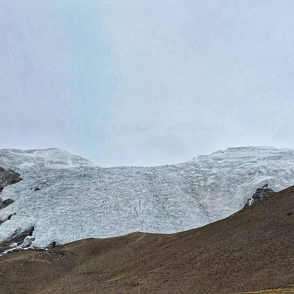 从羊卓雍错出来后,跨越4330米的斯米拉山口后就来到了卡若拉冰川的冰舌下。冰舌前沿海拔5560米,观看卡若拉冰川的地方海拔约有5400米,在山口北面5600米左右的地带,属宁金抗沙峰冰川向南漂移后形成的悬冰川。