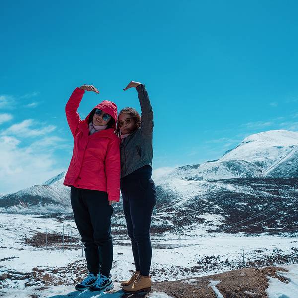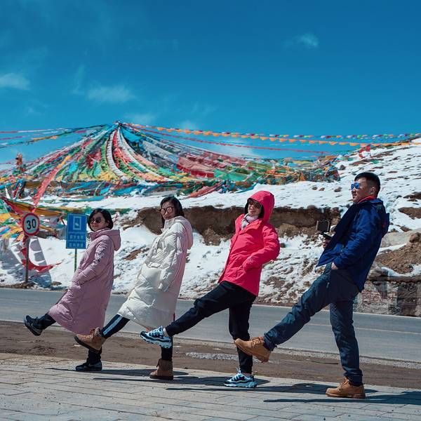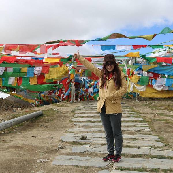这里有个可以挂经幡的景点,上面满满的挂满了经幡,这是来往的藏民跟游客们将内心对最亲最爱的亲人朋友们的祝福语言,写在经幡上,接到雪山之巅迎风飘摆的刀马旗上,让雪山口的风来为家人祈福(吹拂)着。因为是早上就从拉萨出发的,赶到这里的时候刚好是中午时分,所以映入眼帘的,是连绵的雪山。。。还有那蓝蓝又纯净的天空。。。尽管在这个高度上,有些寒冷,可也抵挡不住心中兴奋之情。站在山口,山风劲吹,蓝天白云下,五彩经幡在大地与苍穹之间飘荡摇曳,连地接天,将藏民们虔诚的愿望传达上苍神灵。因为第一次来到这么高的海拔,又是那么兴奋地走来走去拍照,还是有点气喘。不过经过在拉萨修整一天,也缓过来了。只要稍稍休息,不要快步走就好了。据说米拉山,还被称为神的山。这次我们也可以站在这里,与天神来个近距离的接触哦。。。哈哈哈哈在这么绝美有难得的机会,怎可以少一些自拍留念呢。。。哈哈哈,迈开我们的脚步,站在巨山上与神肩并肩。。这个小姐姐,看着远方在思考着什么呢??估计是给这个眼前的美景深深的惊呆了吧。。。我要飞。。。我要飞的更高。。。来到这里,我们感觉棒棒哒。。。我们姐妹俩,来一波小心心哦。。 展开