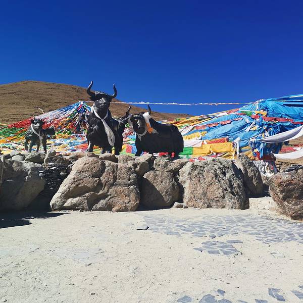 实用 在这里看上去也是一道非常靓丽的风景,一路过来,风景太赞了,在山口有几座铜牛雕塑,自然与文化的完美结合翻过米拉山,到达拉萨就不远了,米拉山是川藏线到拉萨前最后一座大山,也是最高的一座雪山了,米拉山的海拔高度是5013米,不过去的时候是夏天,所以没有看到期待中的雪山,这里山口风也很大,所以看到随风飘起的...翻过米拉山,到达拉萨就不远了,米拉山是川藏线到拉萨前最后一座大山,也是最高的一座雪山了,米拉山的海拔高度是5013米,不过去的时候是夏天,所以没有看到期待中的雪山,这里山口风也很大,所以看到随风飘起的经幡随风舞动,在这里看上去也是一道非常靓丽的风景,一路过来,风景太赞了,在山口有几座铜牛雕塑,自然与文化的完美结合,内心相当的激动。由于山口很高,所以风也很大,建议多带一件外套。可能由于这是最后一到山口,所以大家都很开心,都纷纷下去过去拍照留念,在米拉山口有一个小小的店铺,可以买一些经幡,祈祷着吉祥如意。【提示】由于这里的海拔也比较高,建议不要本蹦蹦跳跳的,避免高原反应。