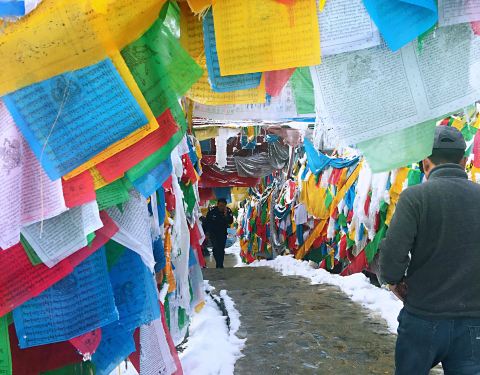 金骆驼 这是来往的藏民跟游客们将内心对最亲最爱的亲人朋友们的祝福语言,写在经幡上,接到雪山之巅迎风飘摆...一路狂奔经过连绵的高山和蜿蜒的山路,终于到达了米拉山口。米拉山口,即西藏米拉山的山口,地处拉萨市到墨竹工卡县与林芝地区工布江达县的分界上,这里是拉萨——林芝旅游线上的一个休憩之地。