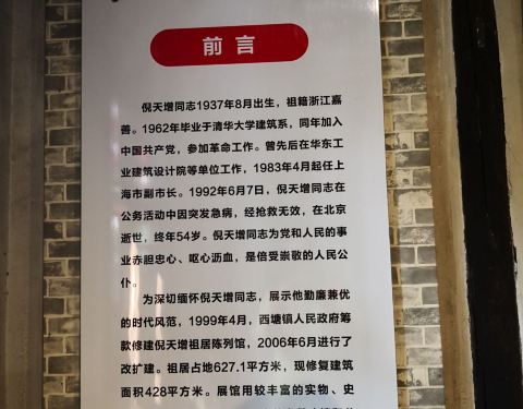 倪宅是西塘12大收费景点之一,这里离东门很近,进来没走几分钟就到了!可以了解过去那段峥嵘岁月倪宅是西塘12大收费景点之一,这里离东门很近,进来没走几分钟就到了!倪宅是原上海市副市长倪天增的祖屋,里面的摆设都古色古香!可以了解过去那段峥嵘岁月!