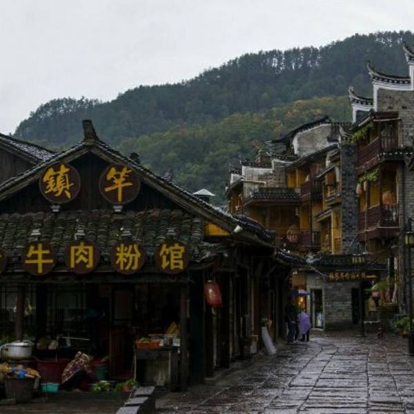 8日早火车渐渐行走着,天空开始滴答的下起小雨。10点多,抵达湖南吉首时,雨开始变大。吉首,一个感觉相对落后的小城市,但看着火车站背后连绵起伏的山,突然就很期待凤凰古镇。人流已散尽,询问了一会,辗转找到火车站旁边去往凤凰的大巴。