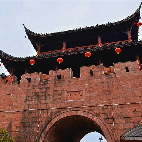湘西东门城楼位于凤凰古城东,面临东岭,紧靠沱江,庄严雄伟,原名“升恒门”,为凤凰古城四大城门之一,与不远处的北门城楼、南门城楼(南华门)曾一起护卫过这座美丽的山水小城。 城楼始建于清康熙五十四年(1715年),城门上部城楼用古砖砌筑,下部由紫红砂岩砌成。城楼高11米,大门上方有枪眼9孔,城门上为两层谯楼,歇山屋顶,覆以腰檐,钩心斗角、工艺精湛。正殿当中塑关云长像,1991年新增明城沙盘模型和古炮台。 湘西东门城楼是沱江岸边的一个制高点,站在这里,近观楼底的古街市和脚下的潺潺沱江,远望河两岸的吊脚楼和青翠起伏的山峦,可谓是一处观古城全景的好地方。而在城楼的楼洞下,常有流浪歌手抱着吉他在这里卖唱,渐渐这种景象成为了古城里一个特色的文青标志,吸引着各地的青年游客驻足。