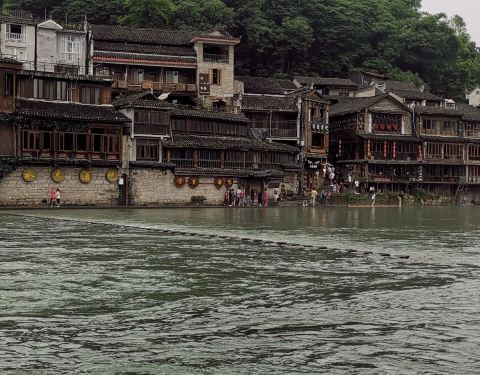 下楼询问前台服务员并被告知,凤凰古城已经在我身边,潺潺流淌的沱江,古韵的吊脚楼就在下楼之处,我不惊感叹!酒店的地理位置好极了,给我的凤凰之旅增加了强心剂。