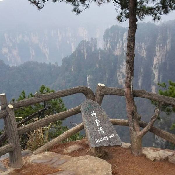 网上说的美景,只能靠想象了。网上说神堂湾三面都是悬崖绝壁,只有一面山上有一道缺口,可向湾底俯瞰早上七点吃过早饭后,我们直奔天子山售票口,坐上环保车约30分钟后,在神堂湾下车。查看之前攻略有说,神堂湾和点将台属于天子山景区,旅游团是不会在这两个景点下车参观的,所以人相对少一些,但风景却不减少一...早上七点吃过早饭后,我们直奔天子山售票口,坐上环保车约30分钟后,在神堂湾下车。查看之前攻略有说,神堂湾和点将台属于天子山景区,旅游团是不会在这两个景点下车参观的,所以人相对少一些,但风景却不减少一丝一毫。果然,连续三个环保车,只有我们两个人下了车。