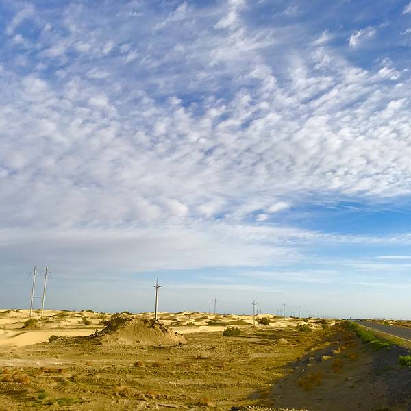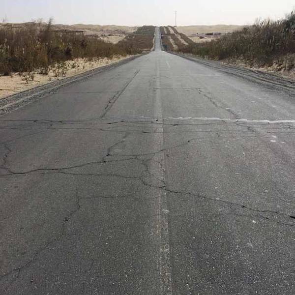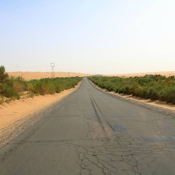 公路起初是为采油运输而修建的,如今又增加了一项功能,作为旅游资源,让驴友们近距离欣赏塔克拉玛干大沙漠的壮美景色。公路两旁人工种植了许多沙柳,有效地挡住了风沙。