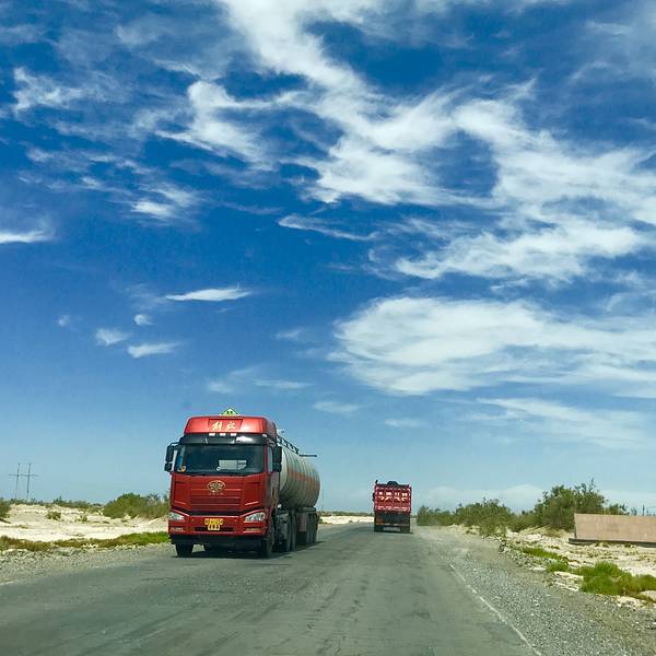 运输石油的大货车穿梭而过,其它车辆不是很多,但是当心测速探头哦,小心被拍罚款。