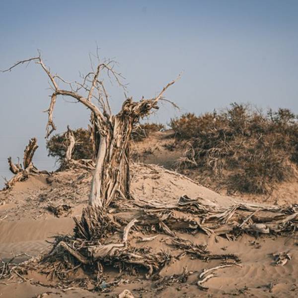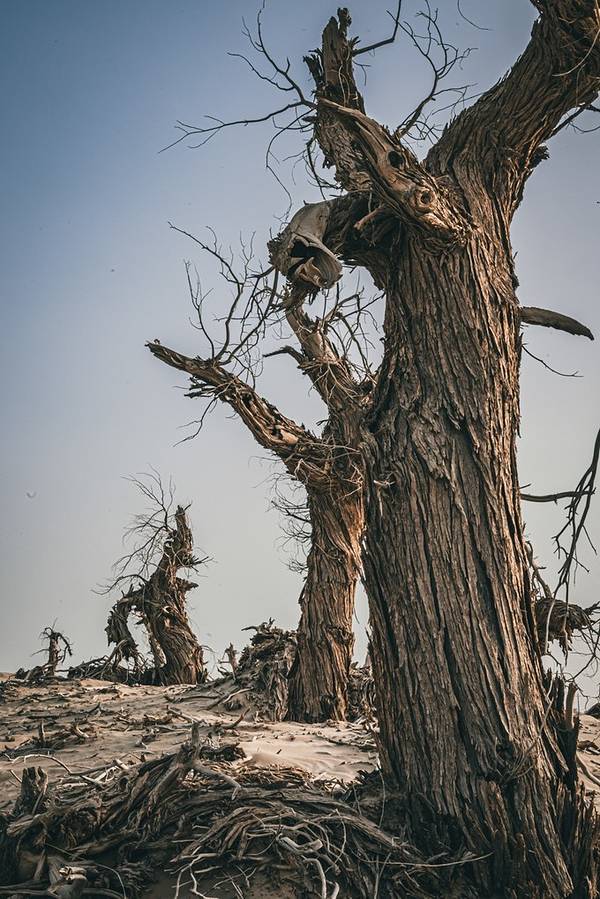 胡杨生长在沙漠地区的,根系扎的相当深。它生活的地方干旱少雨,微生物例如根霉,木腐杆菌以及昆虫类天牛,吉丁虫等等的活动不频繁,所以说死后它的根、躯干也不会腐烂。