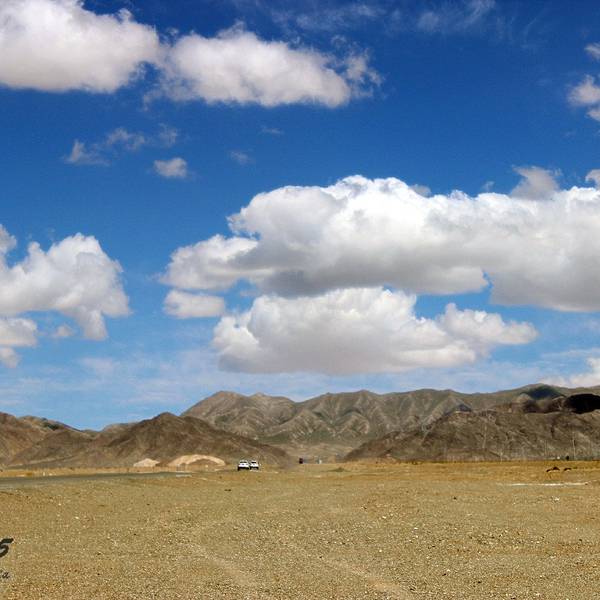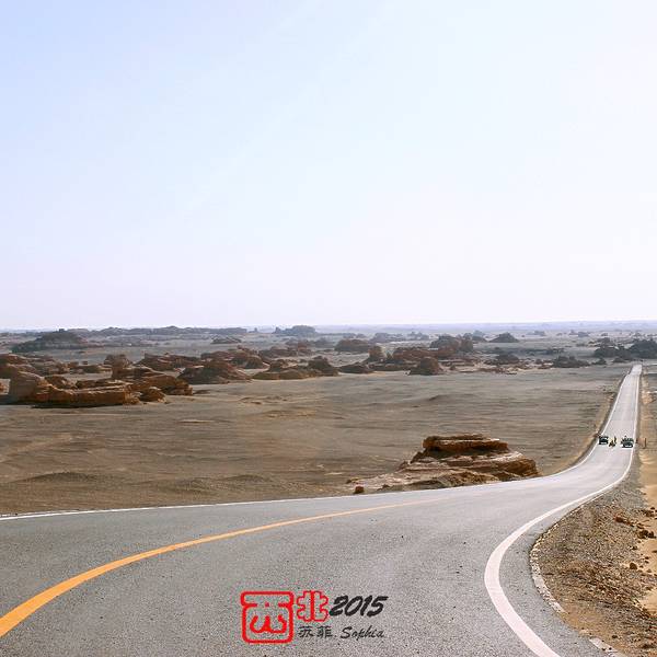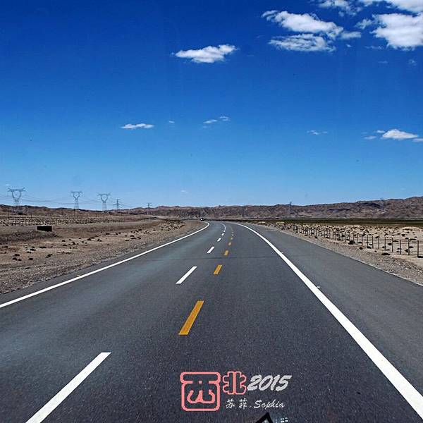 从德令哈到敦煌,500多公里的荒漠。由于限速,汽车至少要走9个小时。窗外是一望无际的荒原,时而戈壁,时而沙漠,连在西北最坚强的动物,如牦牛、绵羊,都不见影踪……倒是一只调皮的骆驼,跑到马路上来跟汽车抢地盘呢!