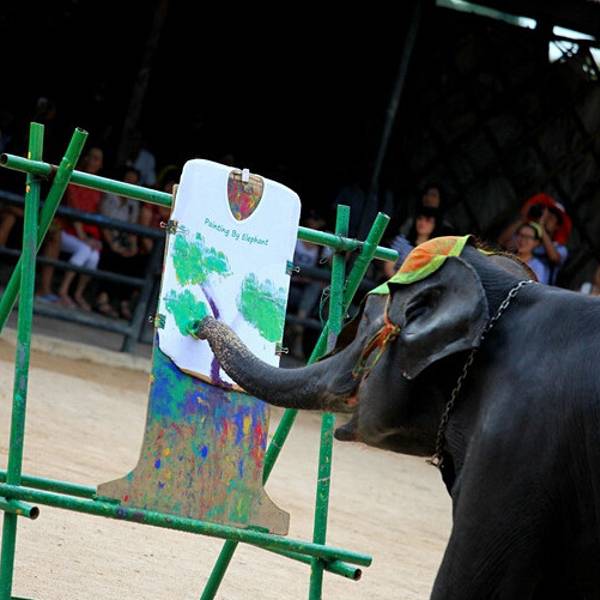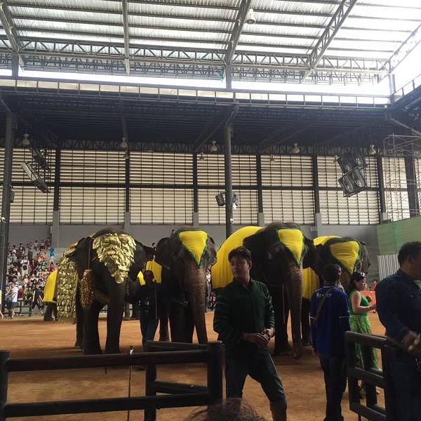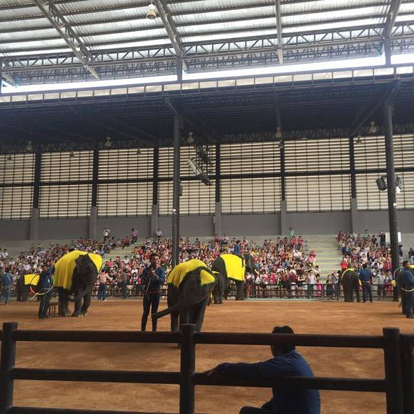 【推荐线路】刚刚入园就会发现,有着各种各样图腾的柱子,很有特色的感觉。首先去参观泰拳表演,一开始真的是被糊弄了,他们打来打去,结果变成互相在玩,最后还把裁判给打到地上去了。然后就是最吸引人的大象表演了,因为有两场,所以一定要提前去占位子,去了晚了,只能站着看表演了。还没有开场,会有很多工作人员问你要不要骑大象和大象拍照,一般是100-200泰铢一个人。还有卖香蕉喂食大象,是20泰铢一串。大象很可爱而且憨态可掬的,摆出各种各样的造型,一会儿玩足球、画画、飞镖、跳绳,主持人还让游客去现场体验大象按摩,真的是忍俊不禁。
