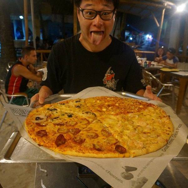 YELLOW CAB也是长滩岛重点推荐的美食之一,可基本都是国人在吃,也可能是攻略推荐问题。分别位于S1和S3沙滩上,不过S3铺位稍微大点,位置也比较舒服。由于我俩比PIZZAS的喜爱度一般,所以2人叫了最小份的10寸披萨+意面;可望着人家1家4口挑最大份的18寸披萨,我俩都痴呆了,还真没见过如果超大的披萨~