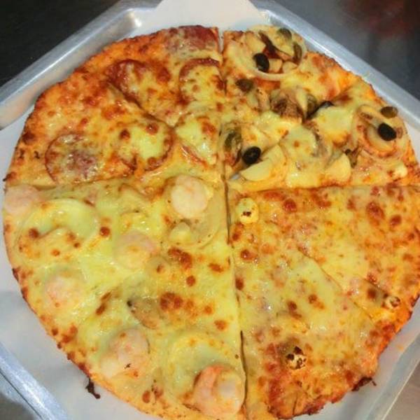 这儿主打披萨和意面,pizza口味多,都是薄底披萨,可以自己选择尺寸,特色的四季披萨可以拼合四种口味…