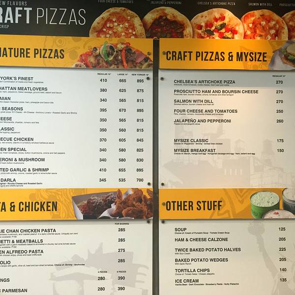 返回MOA,取上超市采购的战果,找了一家yellow cab吃饭,点了四人份的four seasons pizza、tomato soup、chicken wings、sola tea,一共1005P/4人。旁边桌做了一个印度人和一个斯里兰卡人,一直说我长得像日本人...