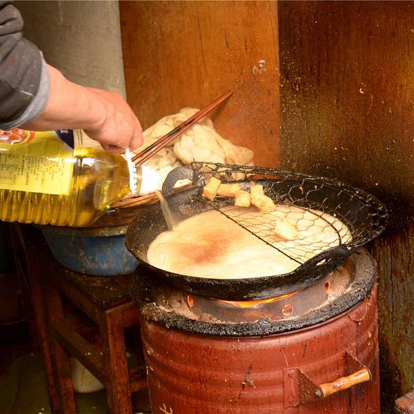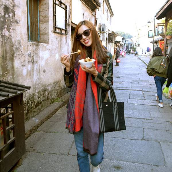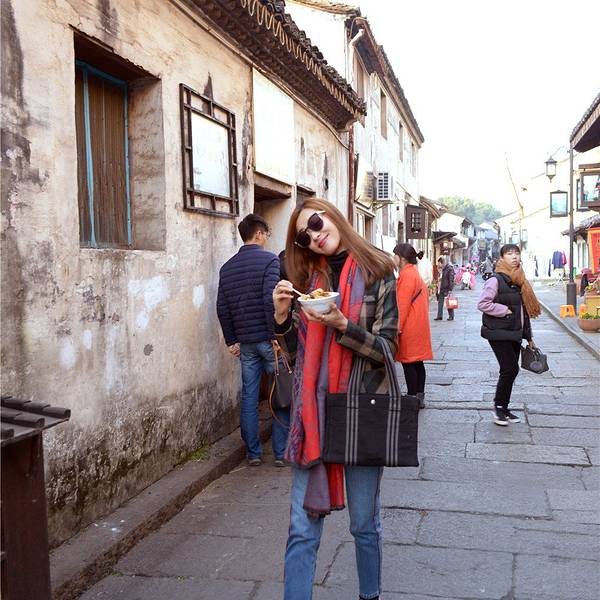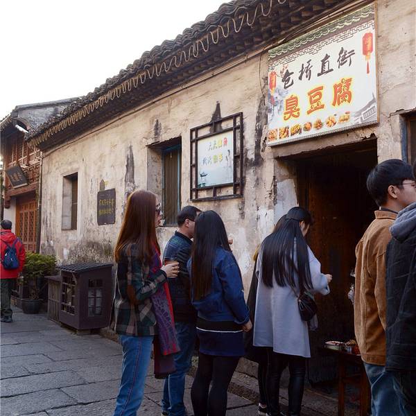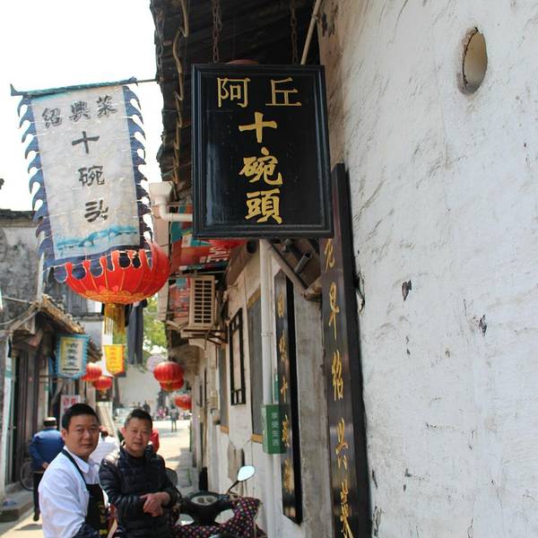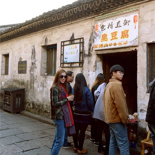 有些优美,是只想也只能用眼睛、用身体,用所有侥幸还没生锈的感官来记录的。比如此刻,阳光明媚,左边的小桥流水,右边的花香,空气中的风。手中的咖啡香,想抓住,不知道是谁经过时带动的一小团空气。我很喜欢这个墙,站在下面拍照应该很好看,但是小鱼不想鸟我。实际是她拍不出来那种意境,算了,别拆穿了,我们都假装不知道吧。小鱼去洗手间,我背后是修改衣服的一家店,因为光很好,我站着晒太阳,老板走出来跟我闲聊,很友好,所以我拍照留念。绍兴小吃众多,主要有臭豆腐臭豆腐臭豆腐,哈哈哈,真的是这样,不夸张的,这恐怕是绍兴最负盛名的了,大街小巷都是。