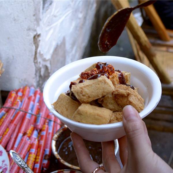 仓桥直街臭豆腐:都是秘制祖传,5元/份,但中国从众心理太伤人,找了个排排站人最多的,耗时40分钟,为了对得起“时间就是金钱”,买了2份,实践证明,多了,而且口味与耗时不等,建议随意一家即可;