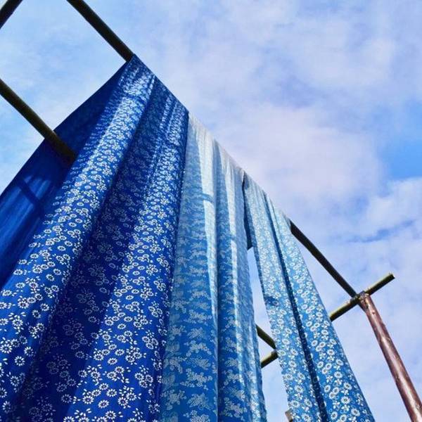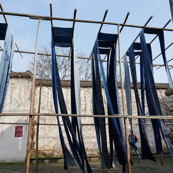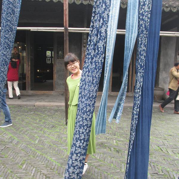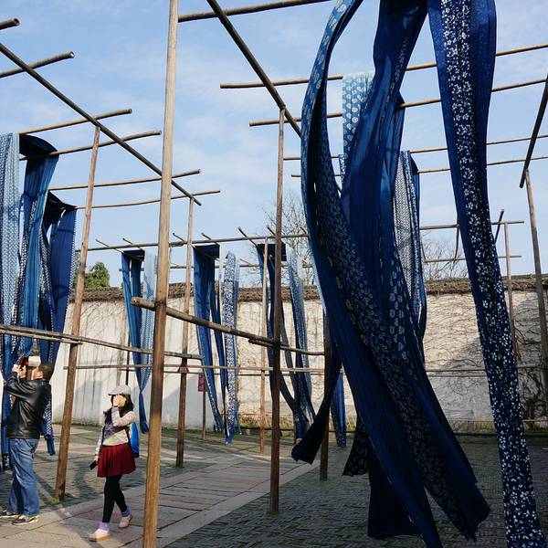 我和这位大姐姐都很喜欢拍照,最喜欢东栅的景点是宏源泰染坊,它的位置比较隐蔽,藏在一条小巷里,而且东栅的巷子就真的特别窄,顶多一个人和一辆自行车过了,宏源泰染坊一般是商铺,一般是染坊,它的蓝布印花特别出名,经过一系列漂洗蜡染就挂在斑驳的庭院之间,微风轻拂,这染布就在庭院间随风飞舞摇曳,美得上天了!然后自己藏在了染布间感受着这一切,似乎在和风神秘地对话,如果说东栅的颜色是朴素的,那这青花布条一定给东栅抹上鲜丽的光彩。 展开