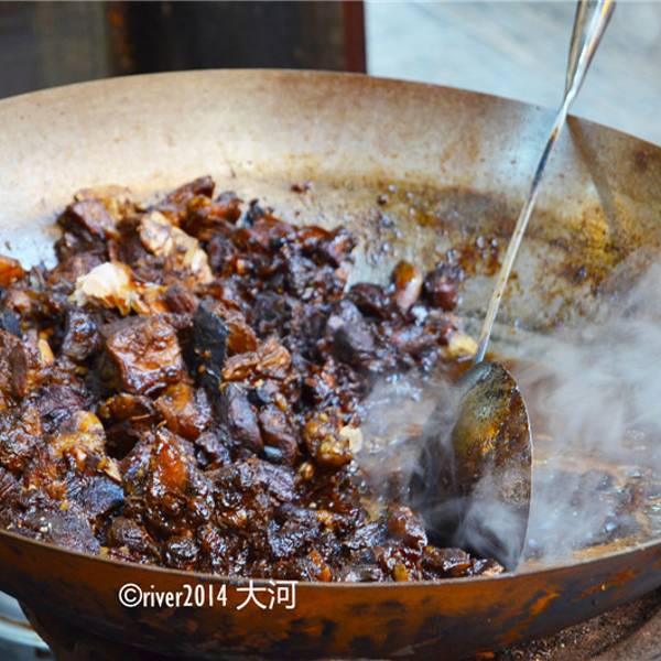东栅最有特色的莫过于蓝印花布,到处各式蓝印花布的制品,但景区的东西价格就是让人不敢恭维,我就是看看就好!我午餐也没选择在东栅吃,其实我觉得选择不多,大多都是小吃,相较于西栅就是比较简单点,乌镇有名的就是羊肉,若真的要吃的话,我会推荐羊肉面的,经过路边看着店家外头摆着一锅锅的红烧羊肉,看起来真的很美味!!