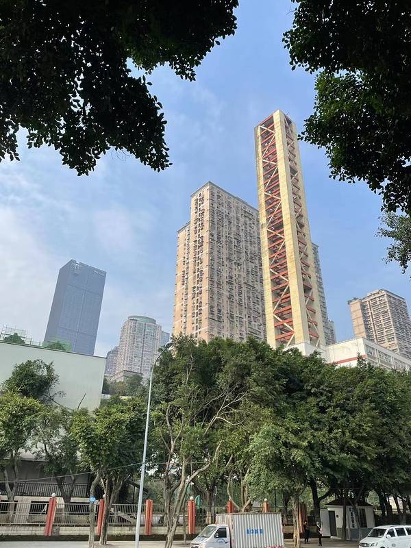 它,第一层通往下望龙门车站,紧连长滨路;第十层出口通往白象街;第十五层出口通往解放东...它,坐落于重庆长江索道北站旁。