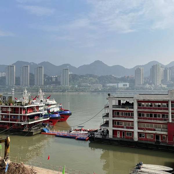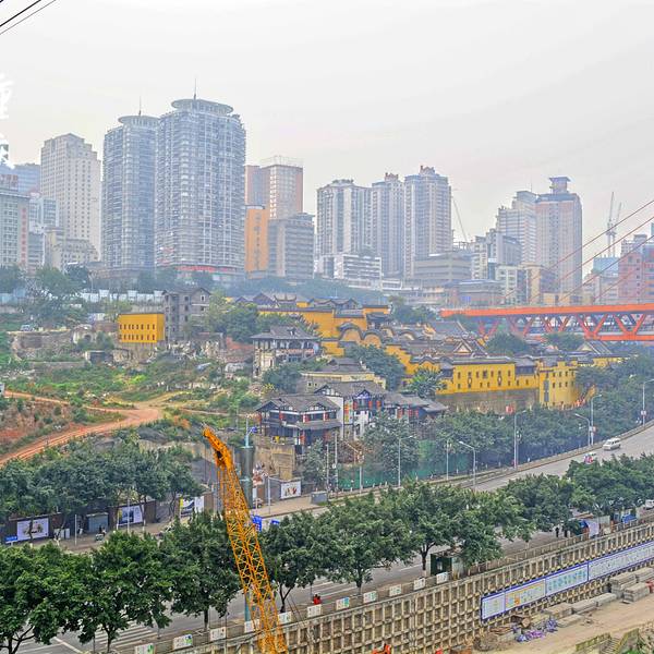 在南岸的长江索道新街站一楼外,有一观景平台,是观赏索道运行景观的好地方。在这里,可以看到东水门长江大桥全景,可以看到对面渝中半岛林立的高楼大厦,可以看到索道车箱从头顶经过滑向对岸或从对岸飘来。 展开