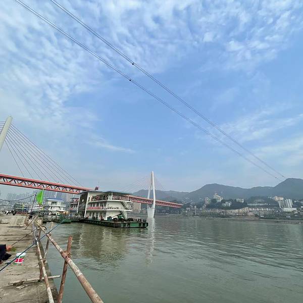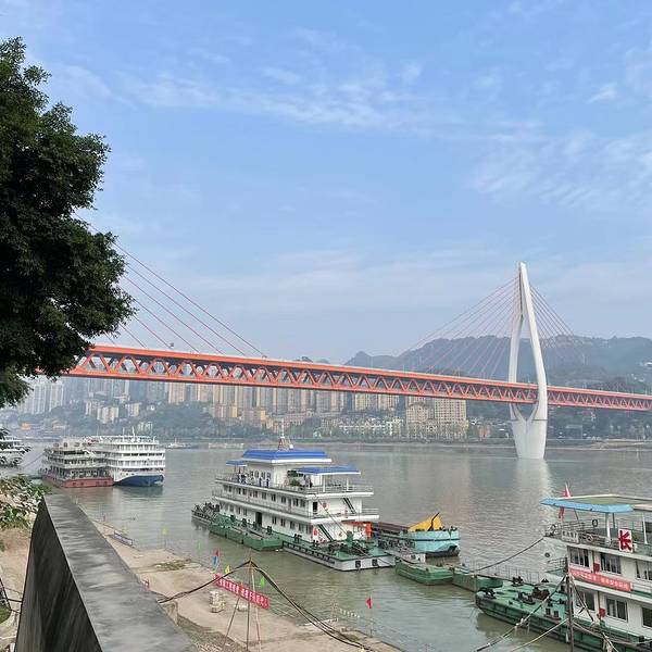 重庆长江索道算是国内唯一还在运行的载客过江索道了,所以感觉不来坐坐会有遗憾。乘坐它飞渡长江,最适合解读重庆这座山城的立体交通与山城外型符号。在车箱里横跨长江,可以从空中俯瞰气派的东水门大桥和长江风光。4分钟的时间,长江两岸的风景一览无余,美不胜收。