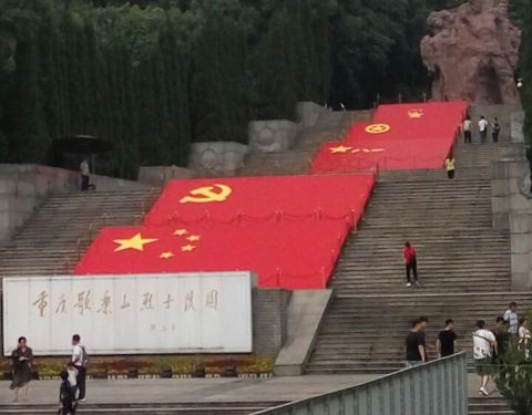 当时在车上看到的我们都哇的叫出来了。好看我们从磁器口搭车去白公馆的路上无意中看到了红岩魂广场那个炒鸡无敌长楼梯被吸引了中途下车