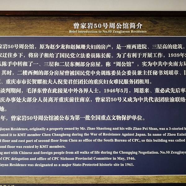 中山四路特别文艺,号称公馆一条街,最为出名的便是周公馆。周公馆内不准拍照,只在门口拍了一下简介中山四路特别文艺,号称公馆一条街,最为出名的便是周公馆。从地铁曾家岩中山四路出口出来后就在对面。