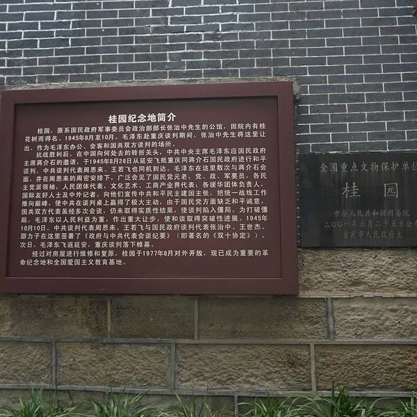 重庆桂园在中山四路上,是一个独立的小院,大门靠中山思路,入内参观是免费的,在门口刷身份证就可以...重庆桂园在中山四路上,是一个独立的小院,大门靠中山思路,入内参观是免费的,在门口刷身份证就可以,桂园里陈列着重庆谈判期间的很多照片