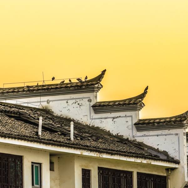 整座古镇内,房屋整齐排列,一片乳白色中,包围着这一抹暗灰色的古屋。每一座屋子都紧凑而稳重,家家户户彼此紧密相连,邻里间无比和谐而温馨。