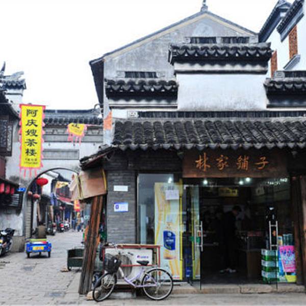 乌镇东栅观前街兴华桥堍有一家名叫“林家铺子”的商店。茅盾故居就在铺子的对面。铺子内售有蓝印花布的制品,如旗袍、零钱包 、小挂件等;乌镇特色小吃,如姑嫂饼、麦芽糖、粽子、牛皮糖等;乌镇特产,如菊花茶、三珍斋的酱鸡酱鸭等。《林家铺子》是茅盾创作于1932年6月的一部小说。主人公林老板是个谨慎而又精通生意的小商人,在时常萧条、生意清淡的情况下,他却利用“一二八”战争从上海逃难来的顾客的需要,大卖“一元货”,获得成功。当然,他还善于施用旧社会小商人惯用的诸如以次充好等伎俩。但是,因为大时代环境的不善,林家铺子还是无可避免地倒闭了。