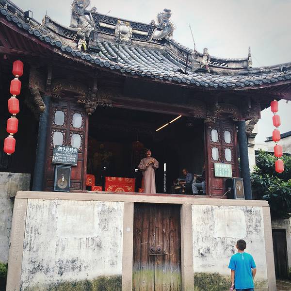 乌镇东栅观前街兴华桥堍有一家名叫“林家铺子”的商店。茅盾故居就在铺子的对面。铺子内售有蓝印花布的制品…