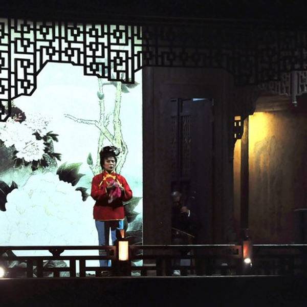 水上戏台只能在对岸远远看着,走到那的时候正好台上有阿姨在唱戏,声音很好听水上戏台只能在对岸远远看着,走到那的时候正好台上有阿姨在唱戏,声音很好听。有很多游人在对岸的树底下坐下来,休息顺便听戏。水上有船,船上有鹧鸪在渔夫的调教下捕鱼,景色很美,意境很美。