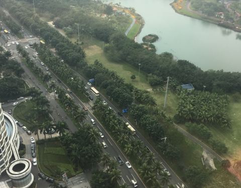 两旁建筑也不密集,不足之处就是缺乏特色性、地标性建筑。干净整洁,道路宽阔干净整洁,道路宽阔。车辆也不多,绿化很上档次,椰林扶疏,鲜花盛开,层次分明。两旁建筑也不密集,不足之处就是缺乏特色性、地标性建筑。