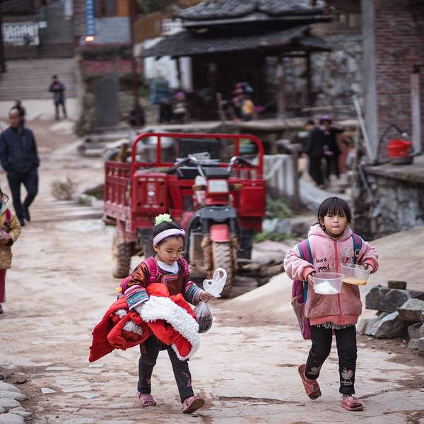 入口处有一大片荷塘,有些已经枯萎了,夏天会更有生气一些。在寨门口的超市买零食吃,暴露年龄的时候到了,看看图中的零食你小时候吃过吗?这个寨子好多背着娃娃的都是老年男性,还挺少见的,之前别的寨子看到都是妈妈背着。村里的小学建设得也不错,正好赶上了中午放学,拍到了可爱的孩子们。在此时,我们遇上了此行最可爱的三个小女孩,最灿烂的笑脸。她们还会面对镜头摆姿势,姿势竟然都不一样,比心、比耶、wink。往山上走,便是视野比较好的地方,拍摄村子全景。不过稻田已经收割了,前景空荡荡的,比较一般。移动的菜场。 展开