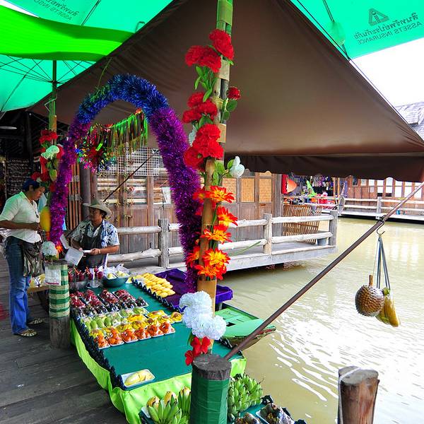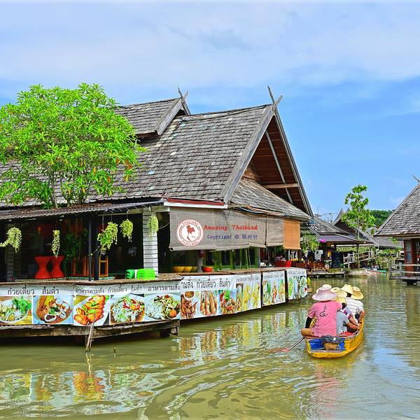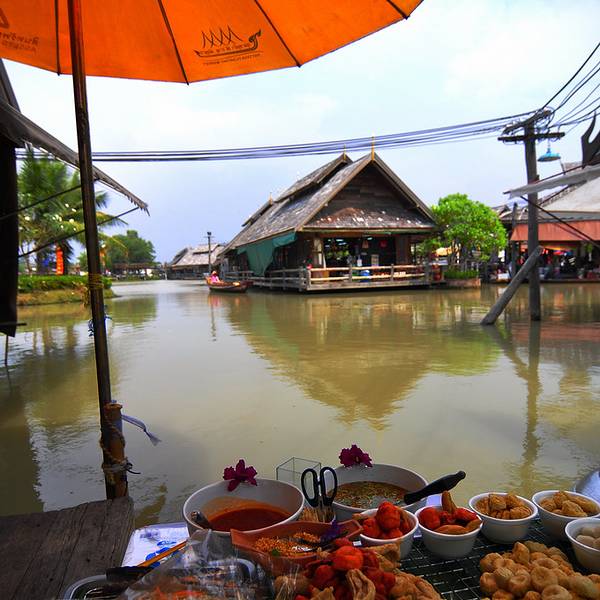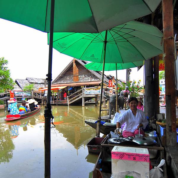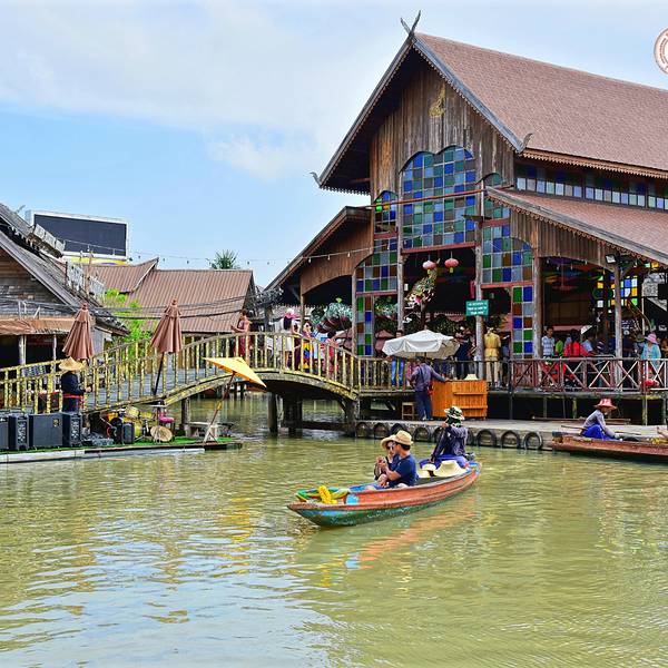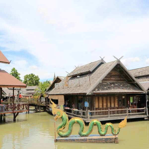 四方水上市场是一个充满活力的传统市场,位于芭堤雅。市场以其独特的水上交易方式和丰富的商品种类而闻名。游客可以乘坐小船穿梭于各个摊位之间,体验传统的水上购物方式。市场内有各种泰国特色小吃、手工艺品和纪念品,游客可以在这里品尝地道的泰国美食,购买独特的手工艺品。体验泰国传统文化。 • 融汇了泰国东部、西部,东北部及南部四个区域水上市场的特色而得名 • 电影《杜拉拉升职记》的实景拍摄地之一 • 不仅有风情浓厚的泰式建筑,更汇聚了各式丰富的美食 △四方水上市场的日常生活 △热闹非凡的四方水上市场