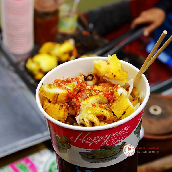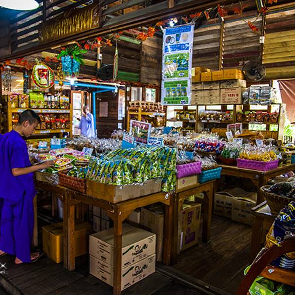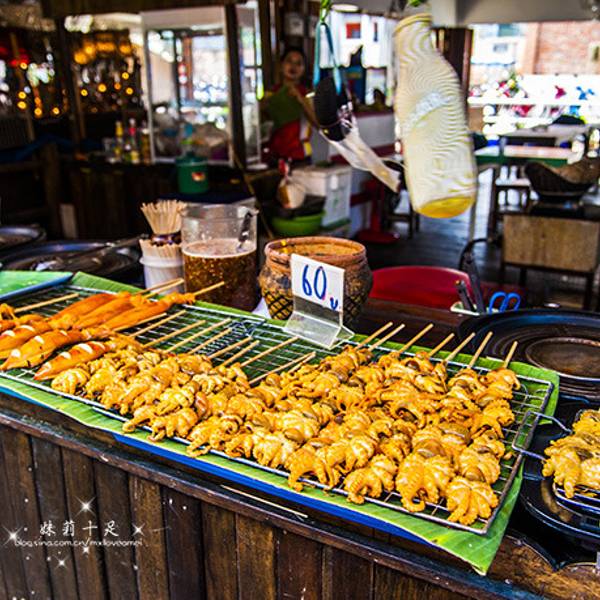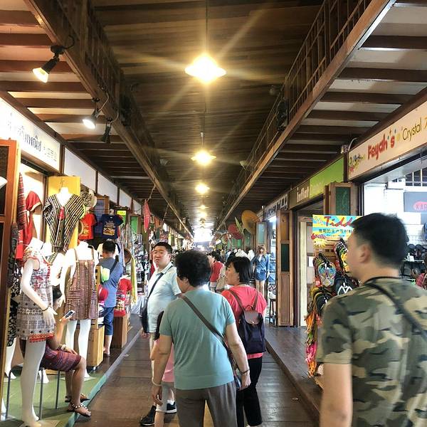 有卖小吃和饰品那些,裙子,那种泰国特色彩色的围起来的,可以讲价到145b一条,跟夜市加格差不多,推荐买回去送人,小吃芒果饭、炸香蕉,鸡脆骨那些做的不如路边摊好吃,还有鳄鱼肉什么的,没敢尝试。