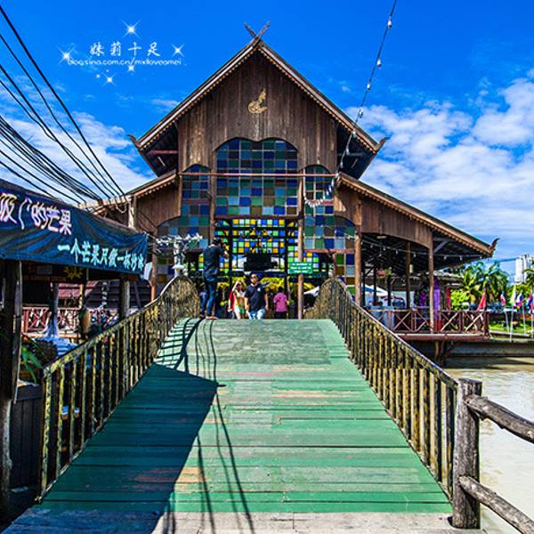 实用 【门票】免费参观。很多款式和花样都很少的。而且水乡晚上,亮起了灯,很是漂亮的感觉【特色】我特别推荐芒果糯米饭,50泰铢特别大只的芒果又香又糯,好吃记了,买了两份,而且米饭也很特别,里面还有很多椰浆!而且水乡晚上,亮起了灯,很是漂亮的感觉。