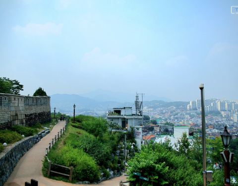 站在骆山公园,可以俯瞰整个首尔站在骆山公园,可以俯瞰整个首尔。在梨花洞壁画村上面,矮墩墩的城墙,由花岗石组成。看意景远眺的理想去处,环境很好,人流也很少,顺着城墙走走路,聊聊天,感觉很舒服