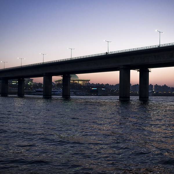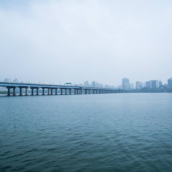 这出了地铁被导航坑的要直接走上大桥,面对迎面而来...🏁汉江公园、盘浦大桥