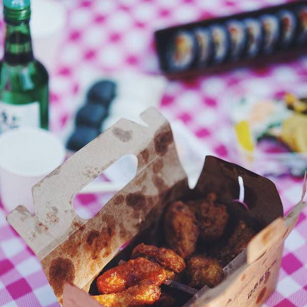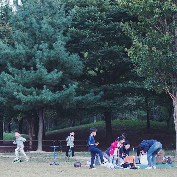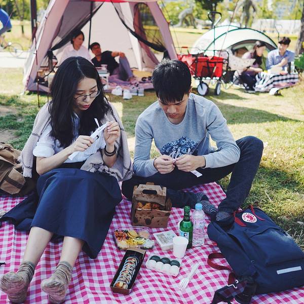 辣味不会很辣,蒜香味满分,还有蜂蜜味没有尝试。汝矣岛汉江公园到了门口才知道这里有野餐工具租。帐篷+野餐布+小桌子+小推车才3000韩元。