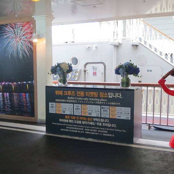 注意事项:如果想在船上欣赏焰火,只有周六晚上19:30那趟,全程1h10min,含自助餐的烟火秀那趟全程1h30min,也是19:30出发。