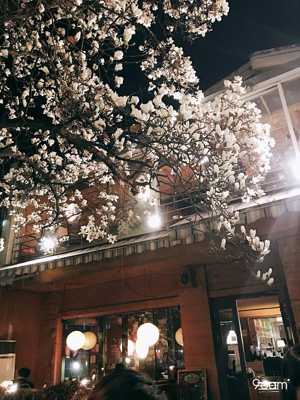 在这边的小巷子选了一家看起来炒鸡有情调,超唯美的小酒馆~~~头顶便是开满树的玉兰花~~~酒过三巡。。。哈哈哈哈哈哈