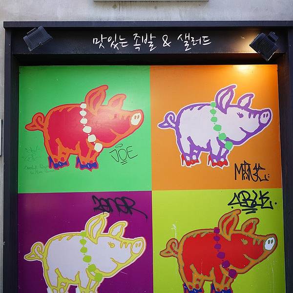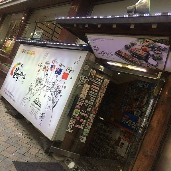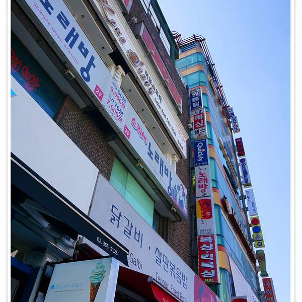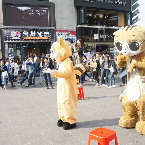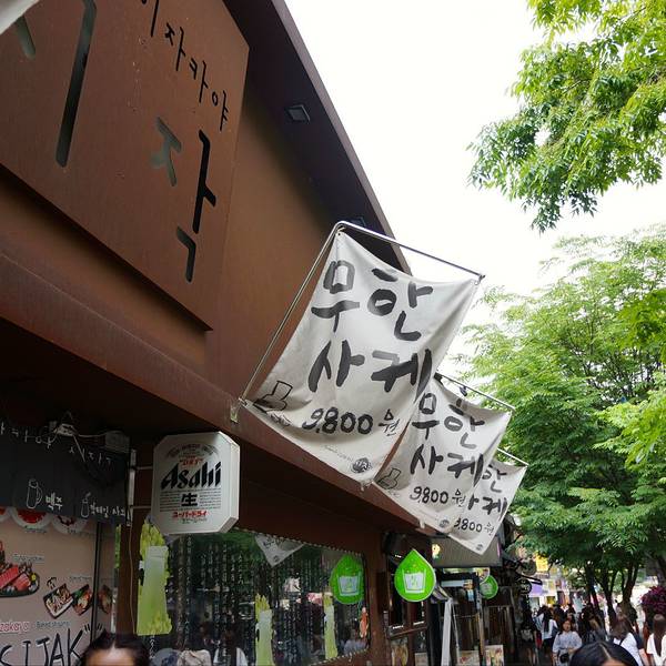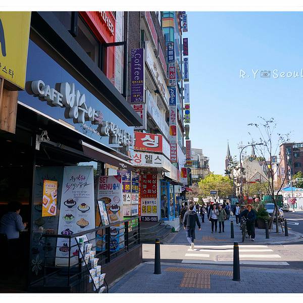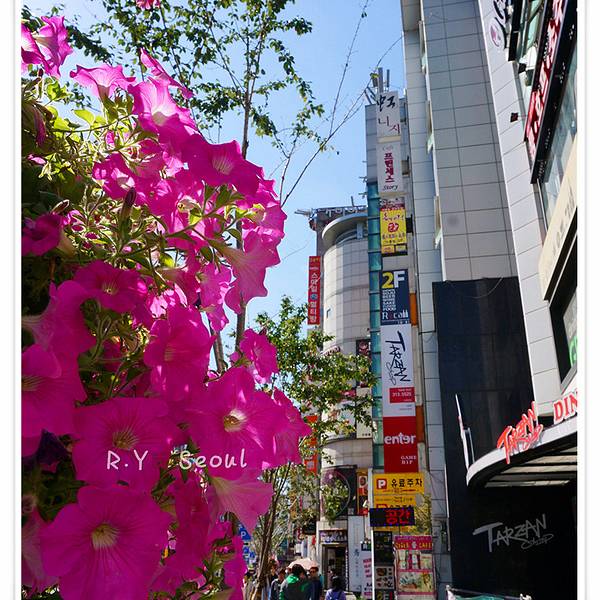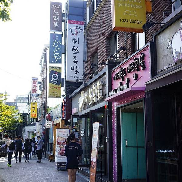 作为暴走一族的我们每天都在暴走,自然又是走着就到了弘益大学; 大学里很小,没什么意思,不过学校门口周边小店小街很多,有家八色烤肉在附近,很好吃,下午来这里会赶上市集;
