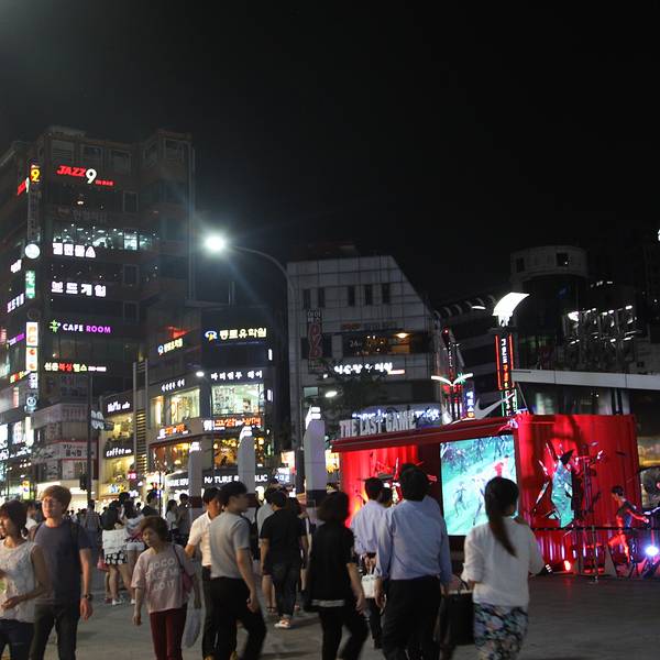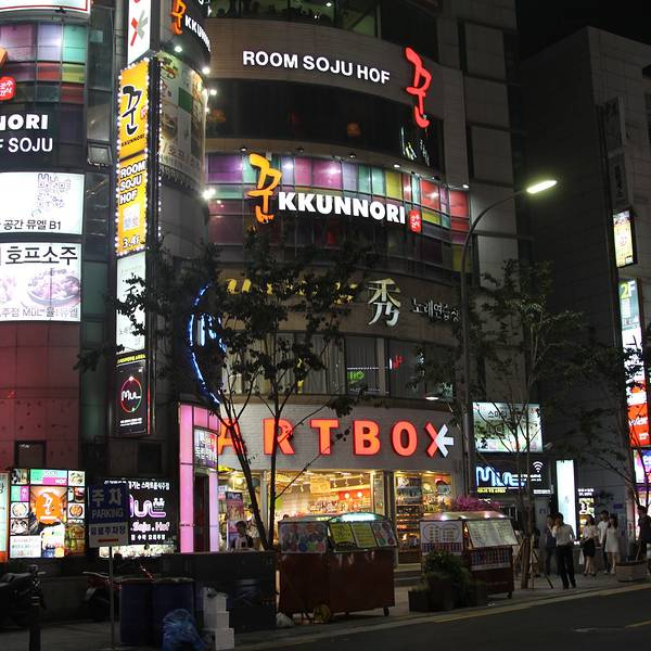 新村(신촌)好吃的太多了。每到周五的时候,这里每家店都很热闹,一直持续到深夜。这里有很多酒吧,夜生活…