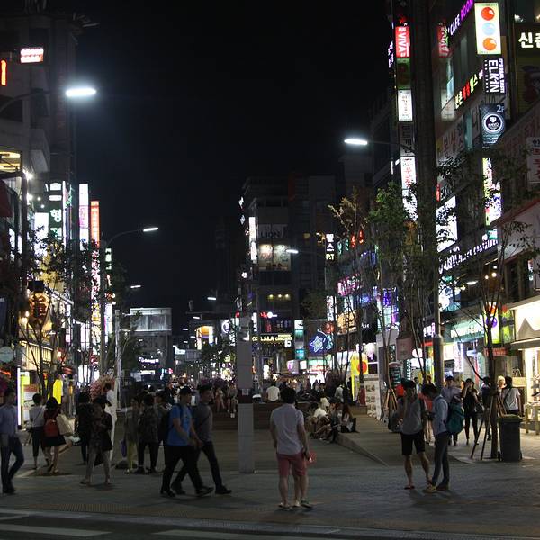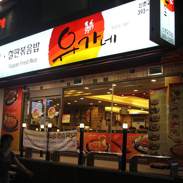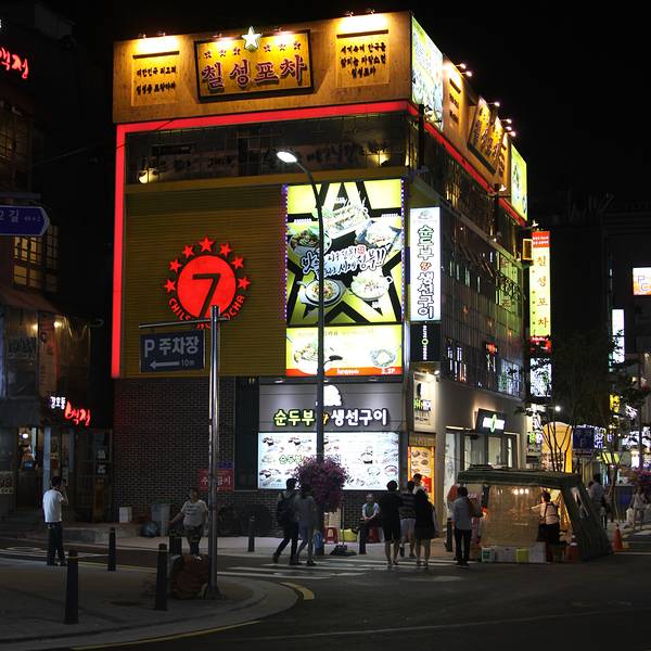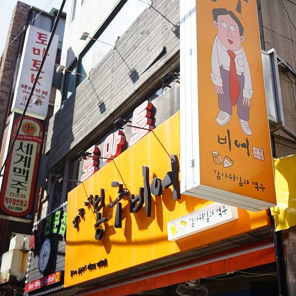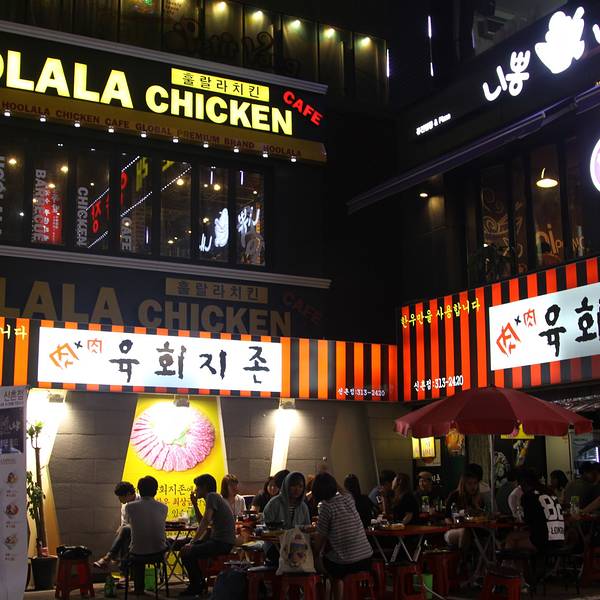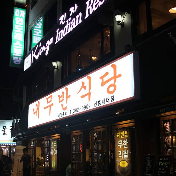 新村(신촌)好吃的太多了。每到周五的时候,这里每家店都很热闹,一直持续到深夜。这里有很多酒吧,夜生活很活跃。周边有梨大、延世大还有西江大和弘大,所以这一区域是很多学生喜欢来聚餐的地方。