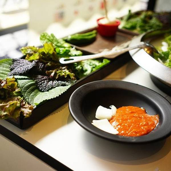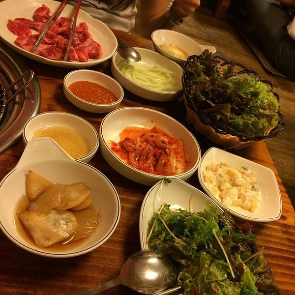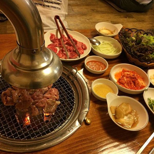 ...上烤,然后吃的时候拿菜叶卷肉在卷进去烤的泡菜一起吃,味道真的很特别,这样吃起来就一点不会油腻了