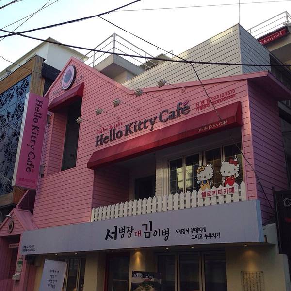 往这边走,其实最主要的目的是逛逛新村。原本也考虑过壁画村,听说楼梯极高就打了退堂鼓。最后一天了,不想让自己精疲力尽地回国,就把慵懒的风景留在最后吧。 严格来说,梨花女子大学也是新村区域的一部分,但是因为个人爱好,我就把它单列出来说了。而针对我概念中的新村,第一个目标原本是Hello Kitty咖啡馆。老实说我对那只无嘴猫挺无爱的,但这种性质的卡通咖啡馆从没去过,忍不住还是想开开眼界。可人算不如天算,即使地图导航在手,我还是不负众望地迷路了,一开始没找到不说,还很憨直地越走越远。所幸整个新村片区都相当热闹,大学林立营造出年轻氛围。哪怕到现在我也没搞懂我走的是哪条道,但沿途风景足以让人心情愉快。逆着阳光来一张,是不是有种韩剧范儿?