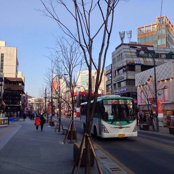 没有具体的景点,梨大和弘大之间的几条路就是新村。 这次韩国行最让我动容的是两种人,大部分的司机师傅是其中之一。 即使在首尔,车最多的地方,如果有人过马路,不论是什么车子,他都会在离你远远的十米开外慢慢地停下,静静的等你走过去,然后在慢慢的从你身后离开,后面的车不会急着鸣笛,同样会很有默契的停下。 鸣笛很少,飞车很少。 其实,在国内,最起码是在我生活的那个城市,这种情况真的很少见,并不是在“韩国人把mers带入中国” 的热点中支持韩国,只是就事论事,任何一个国家都有它的优点,好的地方就应该学习。 也许那些司机,和过马路的韩国人已经不以为意了,他们一定不知道,每次过马路的时候,我的心里都是满满的感动。
