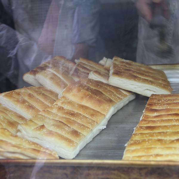 出来博物馆,我们又奔着吃去了口福街,这里吃的很多,特色小吃就是酸奶、羊肉串、馍馍,比较划算。还有据说这里羊排也不错,但本着省钱的原则就没有吃到,最后倒是买了很多馍馍当作路上的干粮,反正要穷游到底!