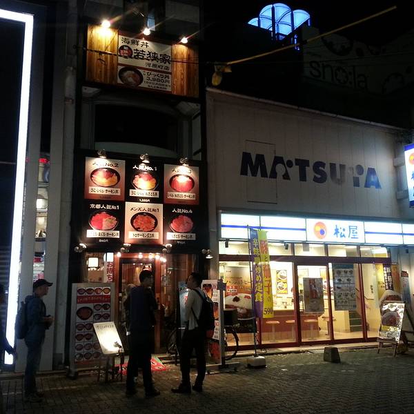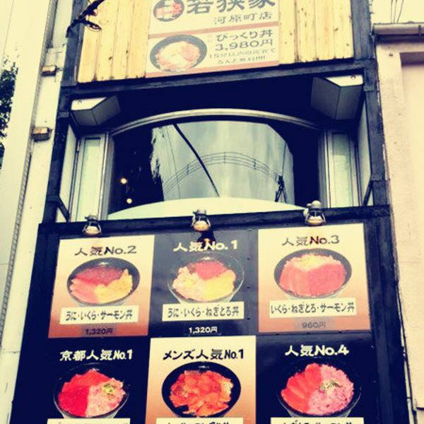 好了景点结束 开启吃吃吃买买买模式。 还是巴士 坐到四条河原町 京都最繁华的所在 都是大商场和各种吃食 杀到若狭家 传说中的平价海鲜盖饭哇哈哈 门面很好认 可以自选配料也可以点固定配餐 我自选了一份四拼盖饭1...