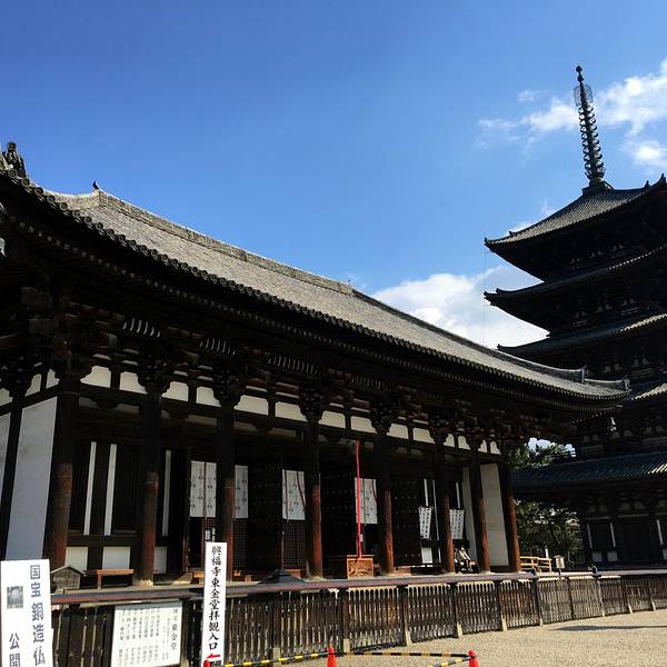 兴福寺的前身可以追溯到建于669年,位于飞鸟的山阶寺,后因藤原家族在710年迁都平城京,而将其全部挪移到了如今的奈良,改名为兴福寺。由于是藤原氏的家族寺庙,寺庙受到了一定程度的重视和保护,成为了平安时代的七大寺之一,建筑风格宏伟大气,透露着一丝名门权贵的高雅风范。随后,因为一系列的权力相斗,很多建筑都遭到了毁坏,如今的兴福寺是在平氏全盛时期重建的,古韵不减当年,其中两座佛塔(五重塔和三重塔)更是寺庙的标志性建筑。 寺里还典藏了不少国宝级的天平和镰仓时代的佛教雕刻。我们可以在兴福寺国宝馆里看到他们的珍容,例如阿修罗像、丈六释迦头像以及一些绘画、历史资料。